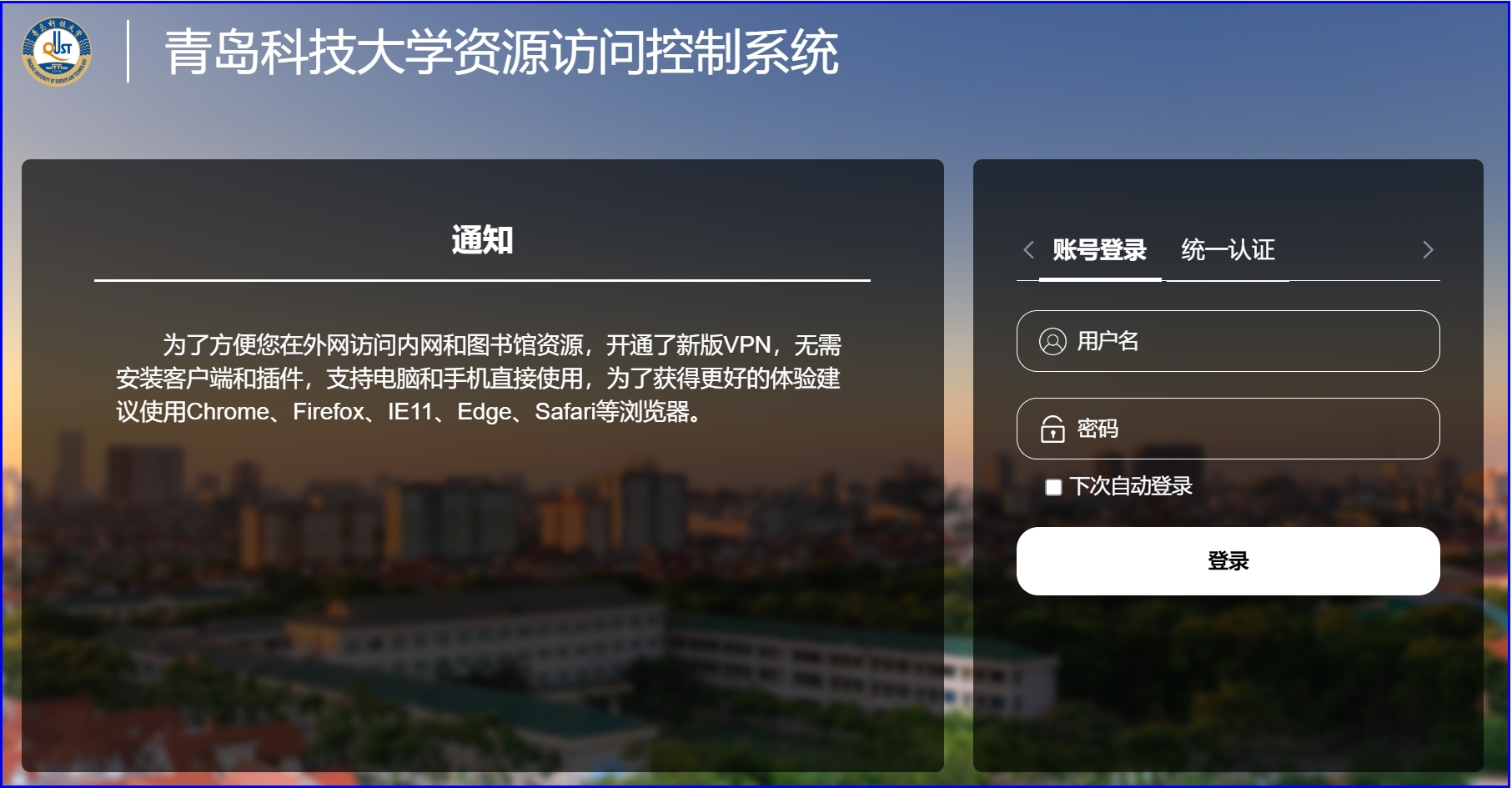 第一步VPN登录太阳成集团tyc33455cc资源访问控制系统,登录网址如下: