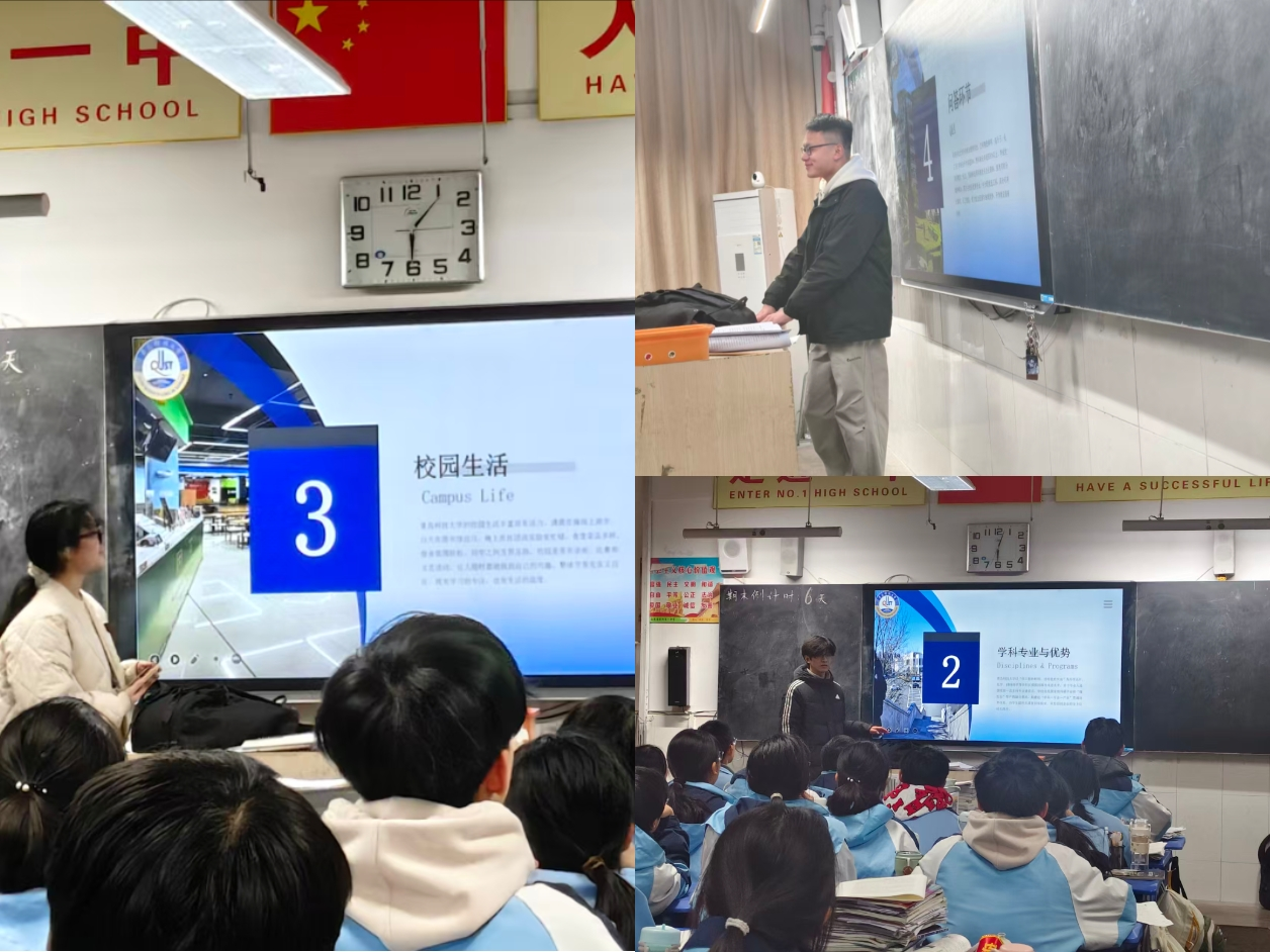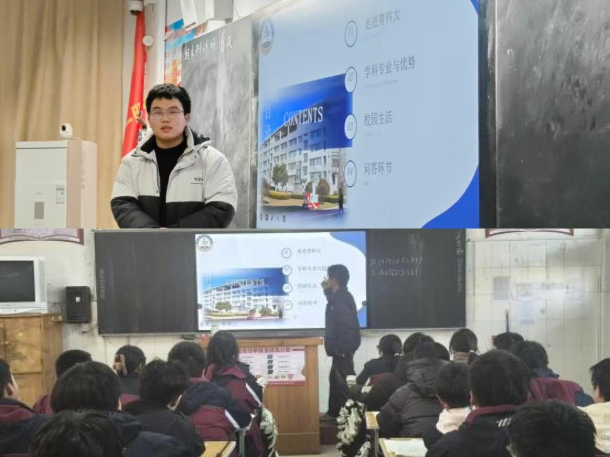 宣讲活动中,学子们结合学校和学院宣传片,以通俗亲切的方式,全方位解读太阳成集团tyc33455cc的办学底蕴与特色优势,宣讲团重点介绍了学校优势学科、专业特色及升学就业前景,结合详实数据与校企合作案例,让高中学子直观感受“学科—专业—产业”贯通的培养优势。除办学实力外,学子们还分享了青科大丰富多彩的校园生活,从温馨舒适的校园环境、“吃在科大”的美誉,到馆藏丰富的图书馆、多元的社团活动与科研体验,用真实场景勾勒出鲜活的高校日常,点燃了学弟学妹的向往之情。互动问答环节,宣讲团针对专业选择、备考心态、志愿填报等学子关切的问题,结合自身经历给出实用建议,实现了高校资讯与学子需求的双向奔赴。