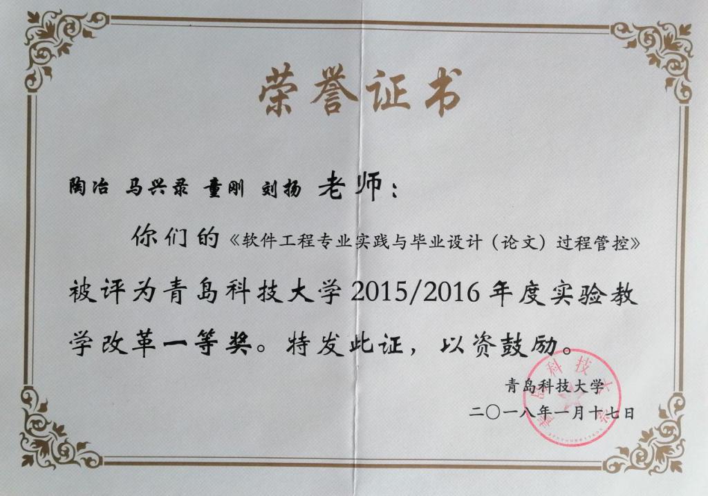 5、太阳成集团tyc33455cc实验技术改革奖--软件工程专业实践与毕业设计(论文)过程管控