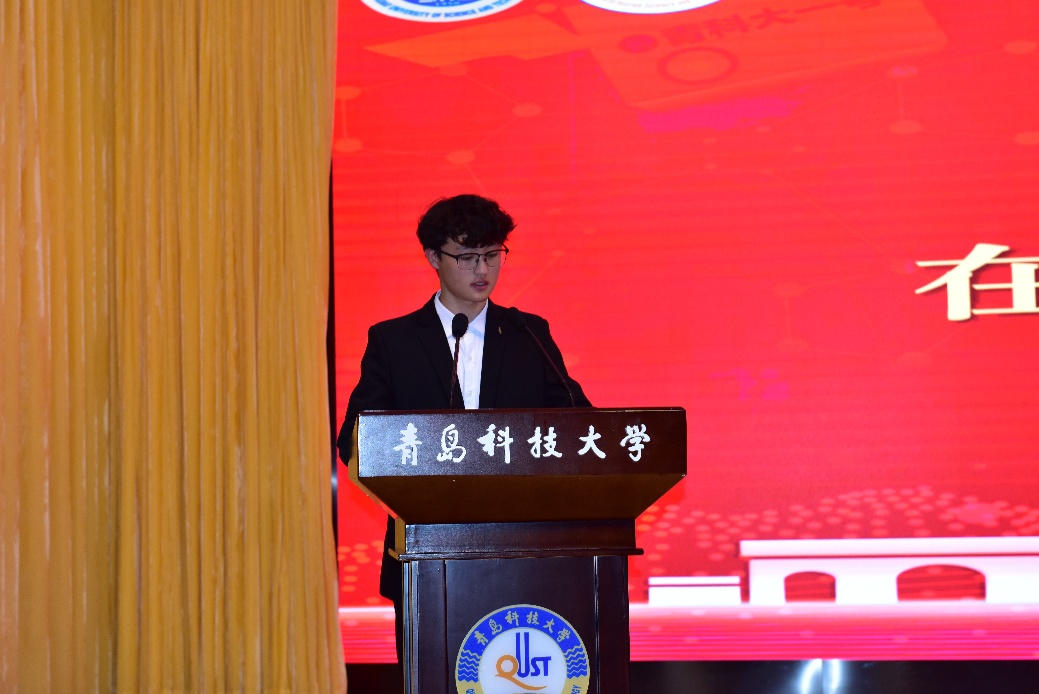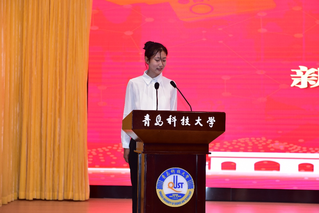 通信252班武圣雯代表全体新生上台发言。她表达了对老师的感恩,对大学生活的憧憬。她分享了对于大学生活的三点思考:转变角色,融入新知;博学慎思,明学笃行;修身以德,全面发展。倡导同学们勇敢面对挑战,珍惜大学时光,携手共进,为自己的未来奠定坚实基础。