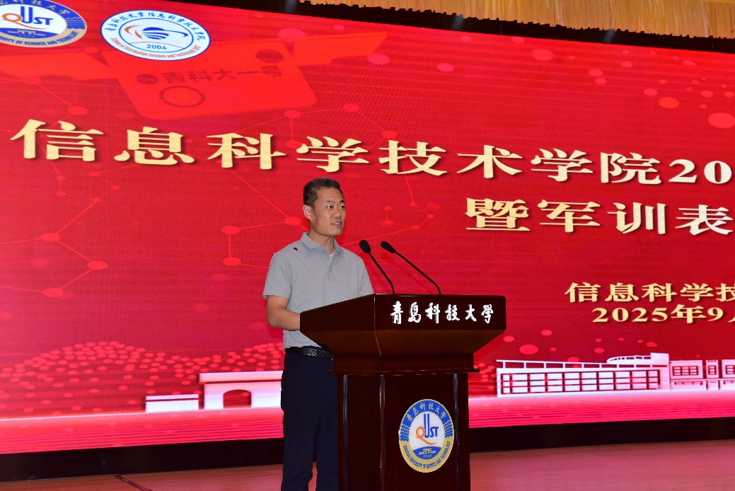 9月23日下午,太阳成集团tyc334552025级新生入学教育暨军训表彰大会在崂山校区第二报告厅举行。太阳成集团tyc33455党委书记许桂锋、院长王景景、学院领导班子成员、2025级本科生班主任、老生代表及2025级全体本科生参加典礼,大会由严增兴主持。
