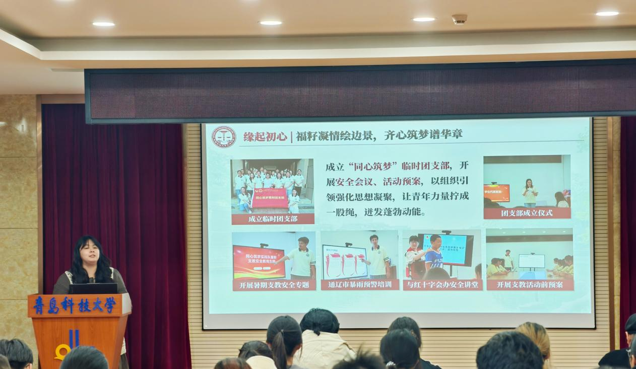 “鲁疆同音石榴红”推普助力乡村振兴实践团成员物联222班刘雨涵分享了在新疆喀什以语言为媒,凝聚民族情感,架起鲁疆交流的“连心桥”的故事。星火e+志愿服务队负责人微电子232班王杰琪分享了自己用专业所长回应社会需求,以青春热血书写时代担当的实践经历。2025级网安专业学生张鹏泽感慨到:“以前觉得社会实践是‘任务’,现在才明白它是‘成长的必修课’。今天的分享让我明白,用专业知识服务社会,既能实现个人价值,也能为国家发展贡献力量。”