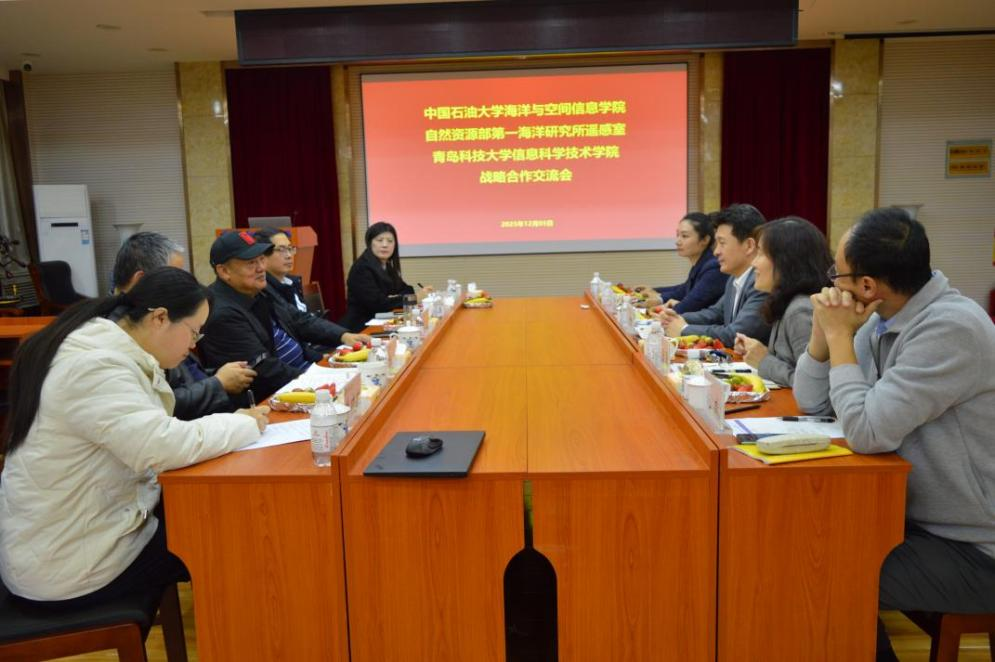 近日,中国石油大学(华东)海洋与空间信息学院院长、自然资源部第一海洋研究所张杰一行来访太阳成集团tyc33455cc,在太阳成集团tyc33455召开战略合作交流会。学校副校长吴明铂,太阳成集团tyc33455院长王景景、学术院长颜舒琳,以及相关教师出席会议。