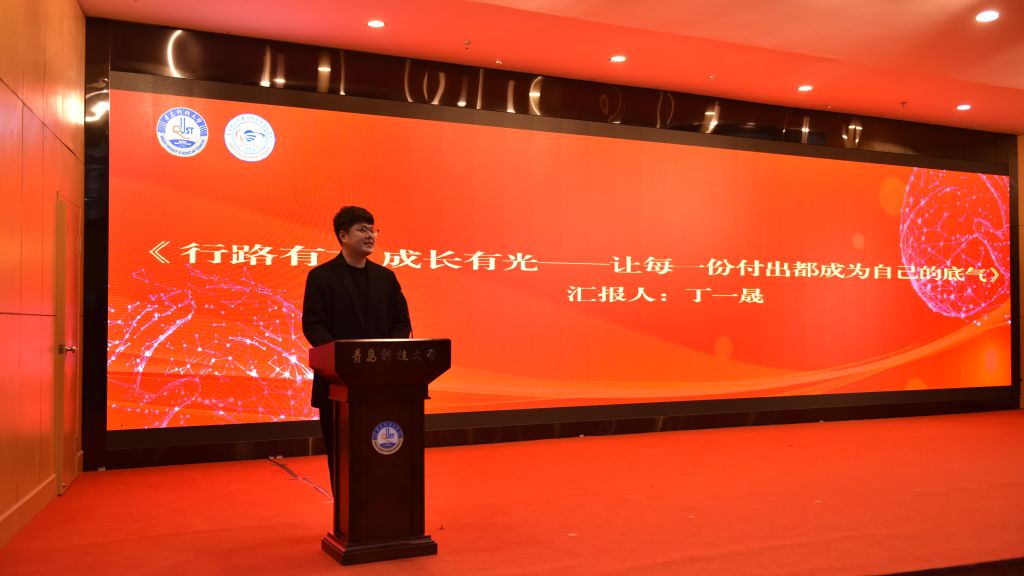 大会第二阶段,学院邀请 2022 届优秀校友青岛汇星未来文化传媒有限公司联合创始人丁一晟作题为《行路有方,成长有光,让每一份付出都成为自己的底气》的专题报告。校友结合自身学习成长、创新创业与职业发展经历,为在场班团干部分享经验、交流心得,引导同学们明确职责定位、提升综合素养、更好服务同学成长成才。
